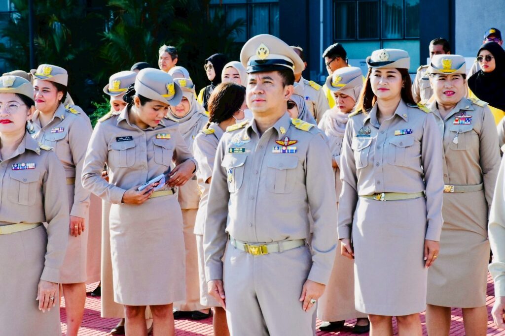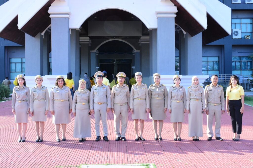 วันจันทร์ที่ 18 สิงหาคม 2568 เวลา 08.00 น. ดร.ชาร์รีฟท์ สือนิ ศึกษาธิการจังหวัดนราธิวาส พร้อมด้วย ผู้บริหาร และบุคลากรในสังกัดสำนักงานศึกษาธิการจังหวัดนราธิวาส เข้าร่วมกิจกรรมเคารพธงชาติ เพื่อแสดงความจงรักภักดี ต่อชาติ ศาสนา พระมหากษัตริย์ ณ บริเวณด้านหน้าศาลากลางจังหวัดนราธิวาส (แห่งที่ 2) อำเภอเมืองนราธิวาส จังหวัดนราธิวาส โดยมี หัวหน้าส่วนราชการ ข้าราชการ และเจ้าหน้าที่ที่ปฏิบัติราชการประจำศาลากลางจังหวัดนราธิวาส แห่งที่ 2 เข้าร่วมกิจกรรมในครั้งนี้โดยพร้อมเพรียงกัน