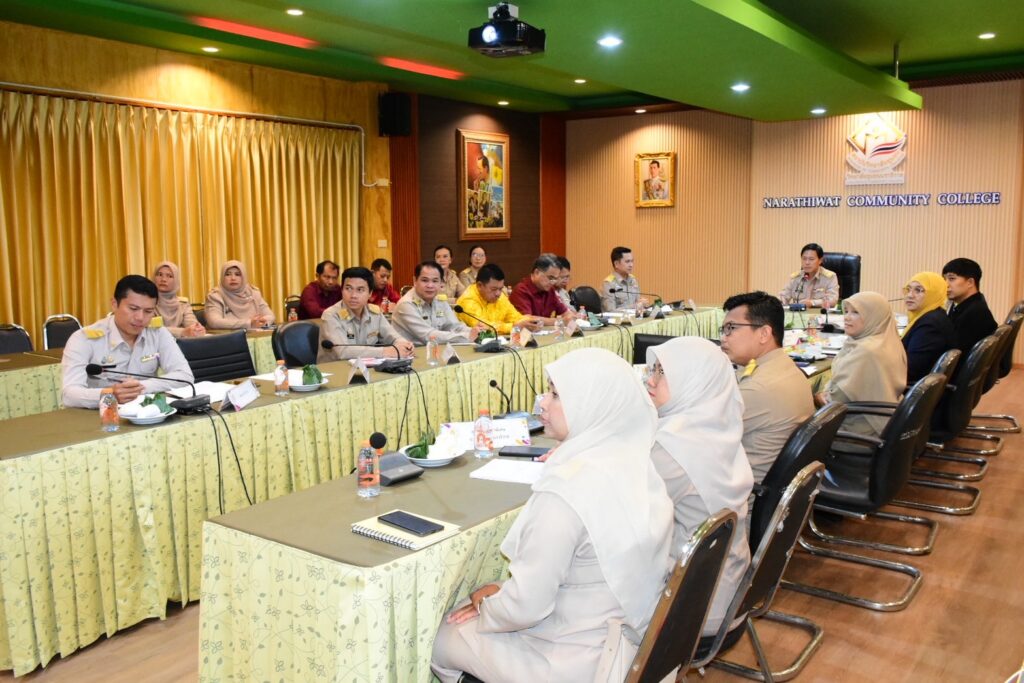 วันจันทร์ที่ 8 กันยายน 2568 เวลา 07.00 น. ดร.ชาร์รีฟท์ สือนิ ศึกษาธิการจังหวัดนราธิวาส พร้อมด้วย นายวินัย แป้นน้อย รองศึกษาธิการจังหวัด, นางพรทิพย์ วุตติหาสะ ผู้อำนวยการกลุ่มนโยบายและแผน และ นางลดาวัลย์ สร้อยสังวาลย์ ผู้อำนวยการกลุ่มอำนวยการ และบุคลากรที่เกี่ยวข้อง ร่วมการประชุมขับเคลื่อนการศึกษาด้วยพลังแห่งความร่วมมือสัญจร ณ ห้องประชุมวิทยาลัยชุมชนนราธิวาส ตำบลลำภู อำเภอเมืองนราธิวาส จังหวัดนราธิวาส