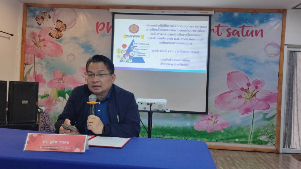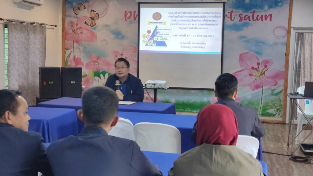 ระหว่างวันที่ 17 – 19 กันยายน 2568 ดร.ชาร์รีฟท์ สือนิ ศึกษาธิการจังหวัดนราธิวาส มอบหมายให้บุคลากรกลุ่มนโยบายและแผน ประกอบด้วย นายวิรัตน์ พุธสุข, นายฟิกกรี สามะ, นางสารีฮา ดาตูมะดา, นางสาวอังคณีย์ บินแวดาโอ๊ะ และนางสาวอาอีซะห์ สะอิ เข้าร่วมประชุมเชิงปฏิบัติการพัฒนาระบบการรายงานผลการขับเคลื่อนกิจกรรมตามแผนพัฒนาการศึกษาระดับภาคและกลุ่มจังหวัดภาคใต้ชายแดน ประจำปีงบประมาณ พ.ศ. 2568 ติดตามและสรุปผลการดำเนินโครงการ โดยสำนักงานศึกษาธิการภาค 7 ณ ภูต้นน้ำ ล่องแก่งสตูล อำเภอละงู จังหวัดสตูล