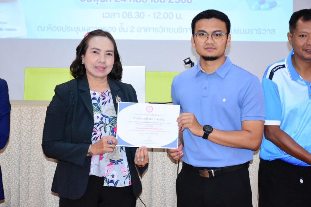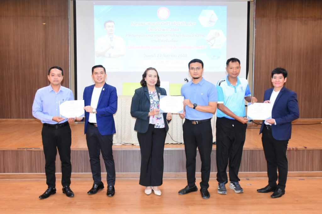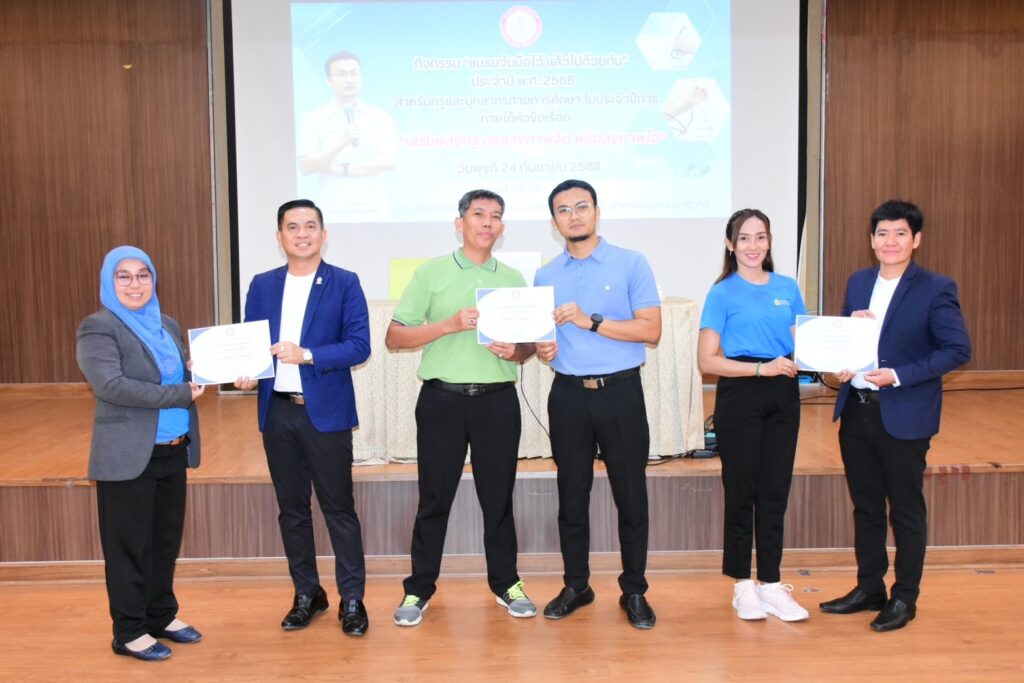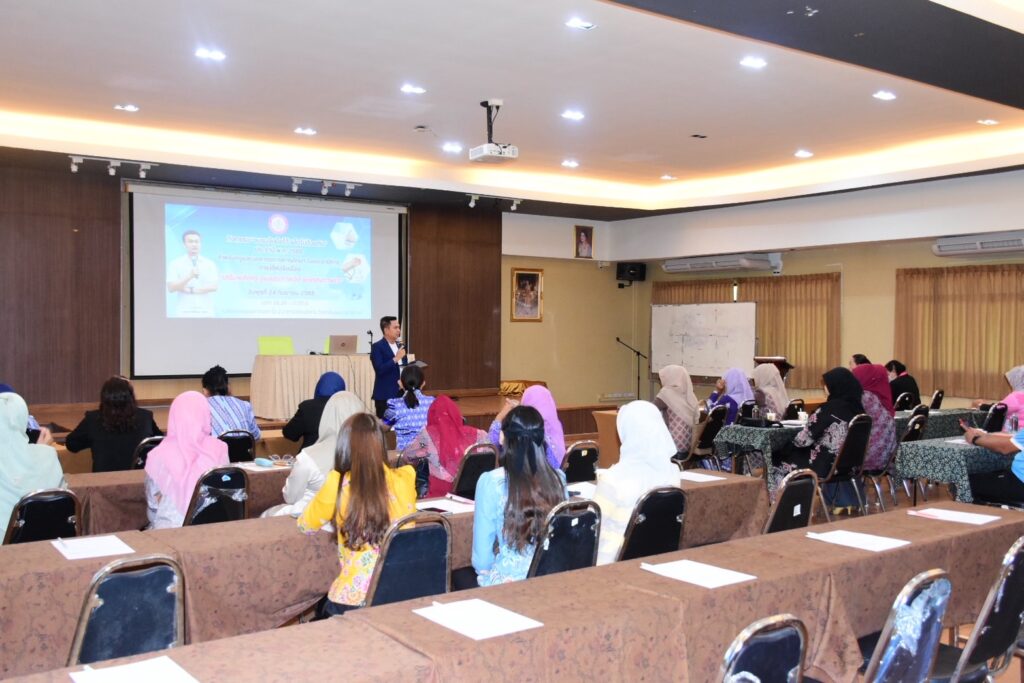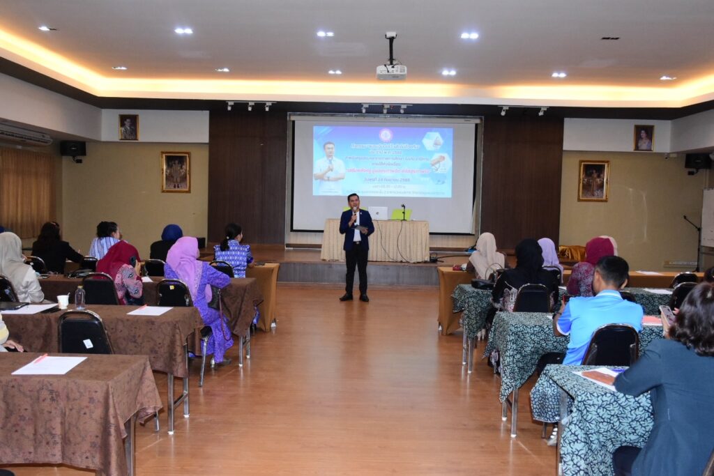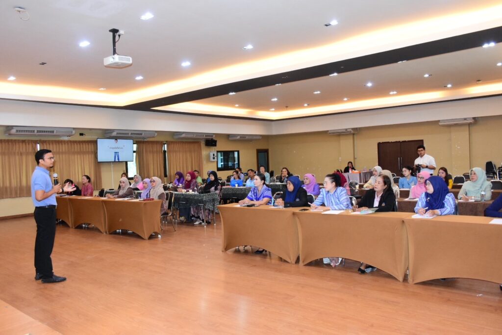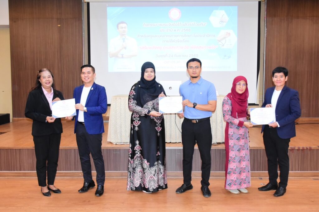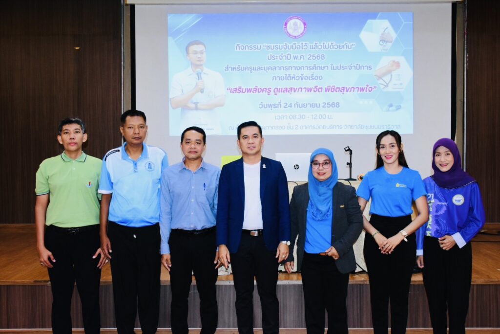วันพุธที่ 24 กันยายน 2568 เวลา 08.30 น. ดร.ชาร์รีฟท์ สือนิ ศึกษาธิการจังหวัดนราธิวาส รักษาการแทนผู้อำนวยการสำนักงาน สกสค. จังหวัดนราธิวาสเป็นประธานเปิดการอบรม “เสริมสร้างพลังครู ดูแลสุขภาพจิต พิชิตสุขภาพใจ” สำหรับครูและบุคลากรทางการศึกษา ภายใต้กิจกรรมชมรม “จับมือไว้ แล้วไปด้วยกัน” ประจำปี พ.ศ. 2568 จัดโดยสำนักงาน สกสค. จังหวัดนราธิวาส ณ ห้องประชุมผกากรอง ชั้น 2 อาคารวิทยบริการ วิทยาลัยชุมชนนราธิวาส ตำบลลำภู อำเภอเมืองนราธิวาส จังหวัดนราธิวาส ทั้งนี้ได้รับเกียรติจาก นายแพทย์กิ๊ฟลัน ดอเลาะ จิตแพทย์ โรงพยาบาลนราธิวาสราชนครินทร์ เป็นวิทยากรในกิจกรรมครั้งนี้