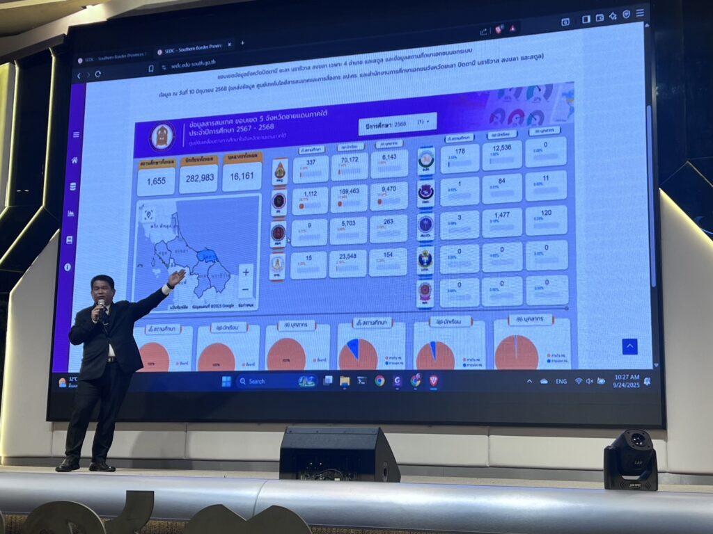 วันพุธที่ 24 กันยายน 2568 เวลา 08.30 น. ดร.ชาร์รีฟท์ สือนิ ศึกษาธิการจังหวัดนราธิวาส มอบหมายให้ นางสาวอังคณีย์ บินแวดาโอ๊ะ นักวิเคราะห์นโยบายและแผน และ นางสาวกามีละ มะมิง นักทรัพยากรบุคคล เข้าร่วมประชุมสรุปผลการดำเนินงานขับเคลื่อนระบบข้อมูลสารสนเทศด้านการศึกษาในจังหวัดชายแดนภาคใต้ และรายงานผลการตรวจราชการ และติดตามประเมินผลการจัดการศึกษาของกระทรวงศึกษาธิการ ประจำปีงบประมาณ พ.ศ. 2568 เขตตรวจราชการที่ 7 โดยศูนย์ขับเคลื่อนการศึกษาในจังหวัดชายแดนใต้ ณ ห้องประชุมแกรนด์บอลรูม ชั้น 3 โรงแรมเซาเทิร์นอร์พอร์ต อำเภอหาดใหญ่ จังหวัดสงขลา